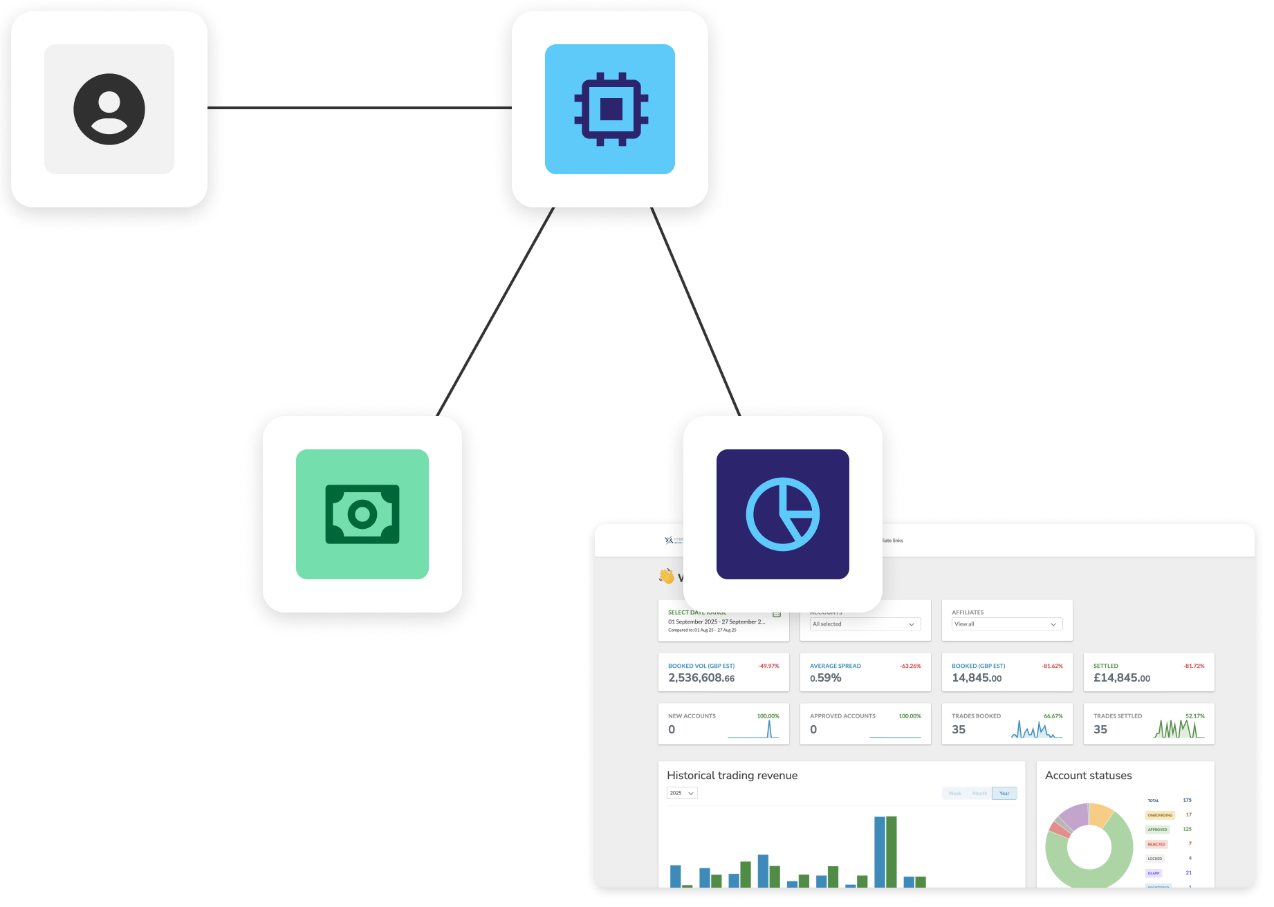 Build and export the reports you need, when you need them, with detailed analytics on transaction frequency, client behaviour, and relationship value