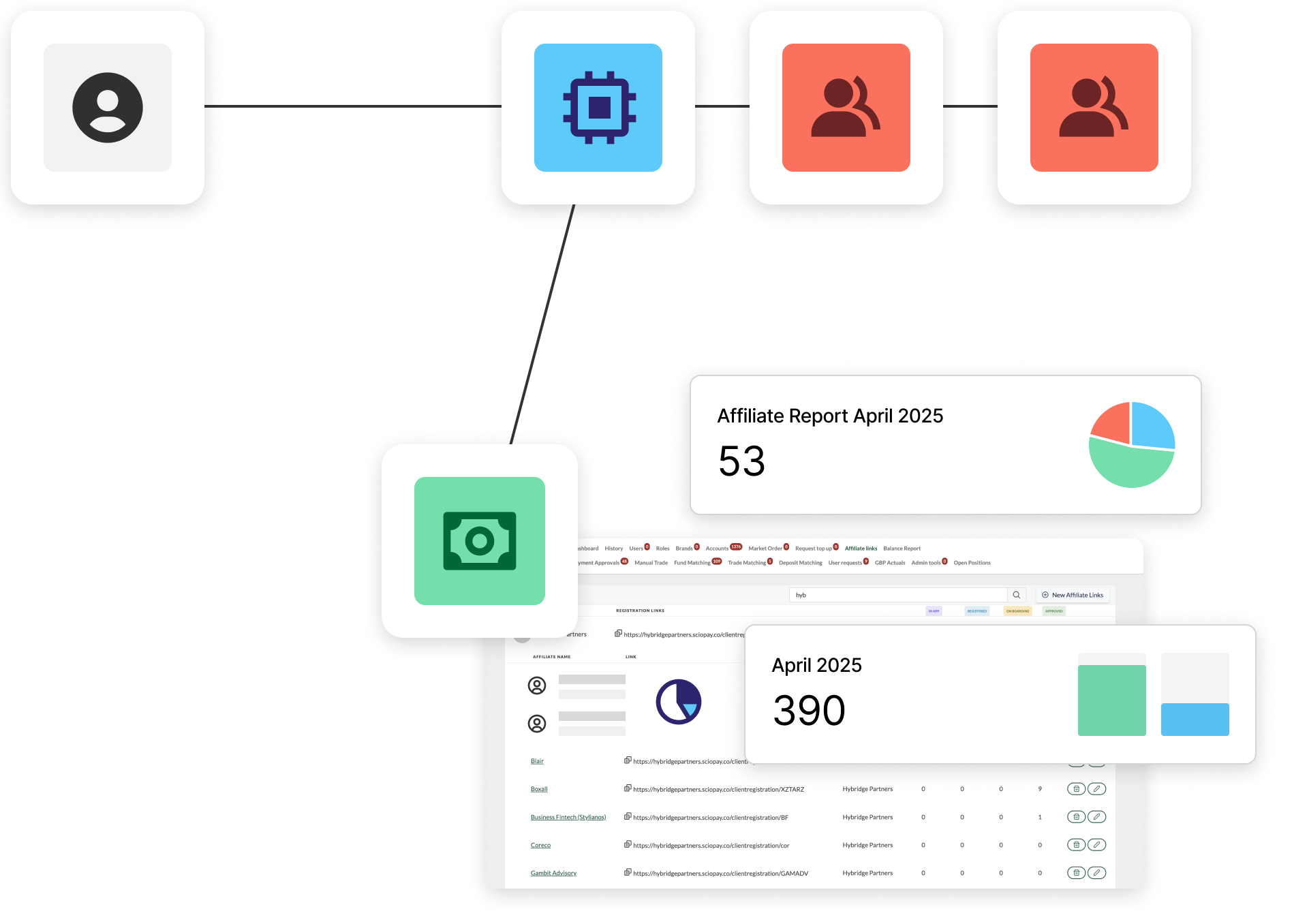 Our Affiliate Management tool helps businesses track where clients are sourced - whether through their sales team, business network, or marketing events. This helps centralise data, making it easier for you to measure performance, pay introducers, and optimise resources for stronger ROI.